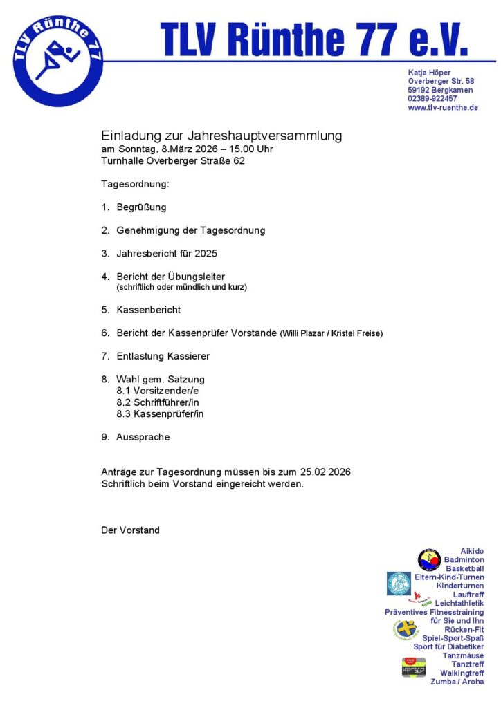 Am 08.03.2026 findet unsere Jahreshauptversammlung statt!